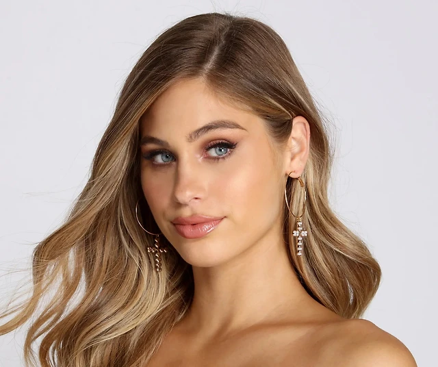 Signature Quilted Cut-Out Hangtag Charm Huggie Earrings