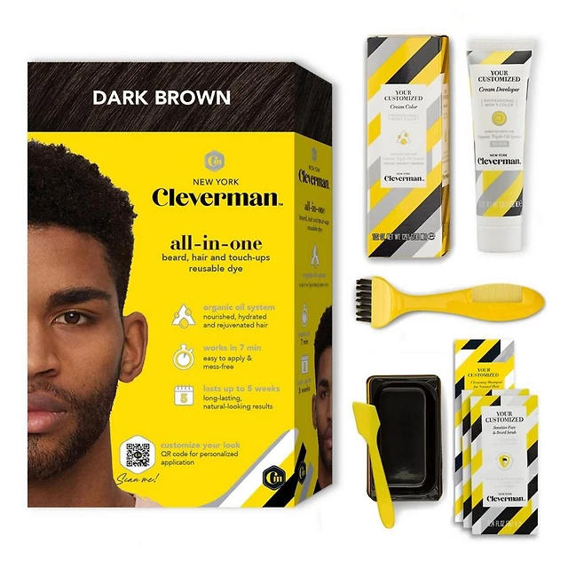 Cleverman Coarse & Coily Hair · Reusable Beard Dye Kit - 4 Uses, 7-Min Natural Gray Coverage