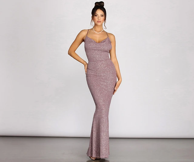 DJ Jaz Womens Long Sleeve Satin Evening Gown