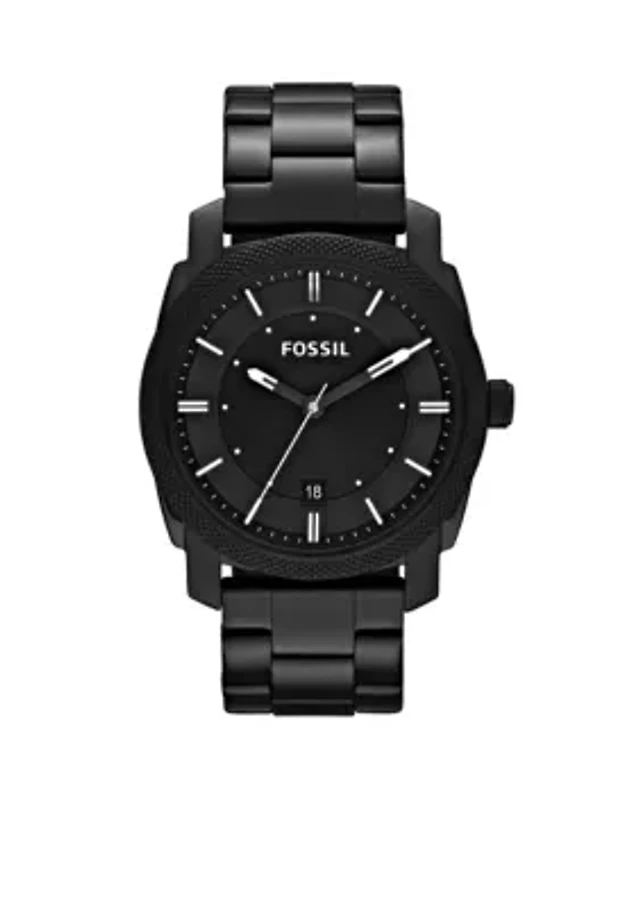 Fossil Machine Black 3 Hand Stainless Steel Bracelet Watch