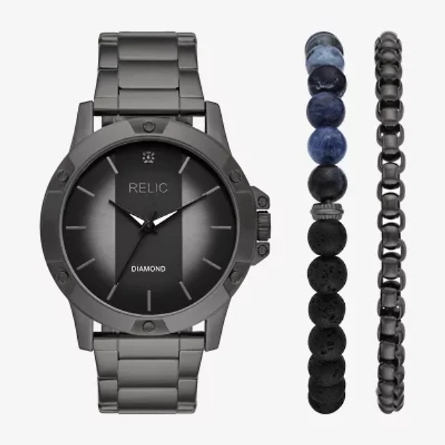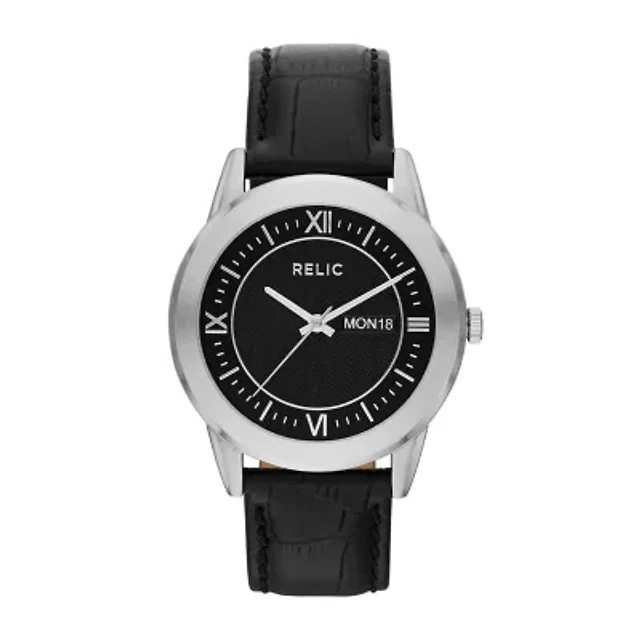 Relic® Mens Silver-Tone Black Leather Strap Watch ZR77267