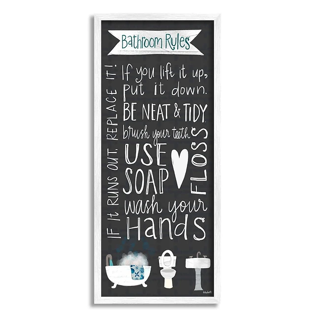 Stupell Industries Bathroom Rules Sign Whimsical Tub Toilet Sink Framed Wall Art