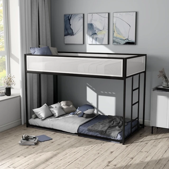 Black & White Mesh Nellie Twin Over Full Bunk Bed