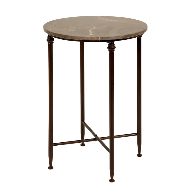 White Marble and Black Metal Round Accent Table