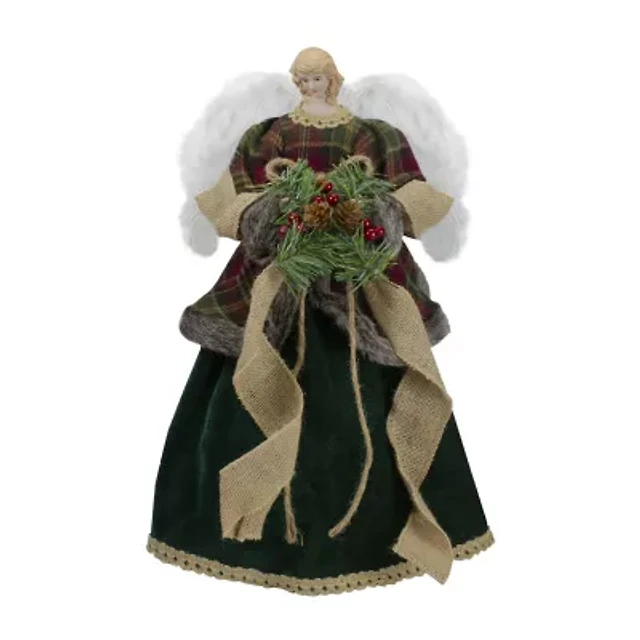 18'' Red and Green Angel in a Dress Christmas Tree Topper Accented with Holly Berries - Unlit