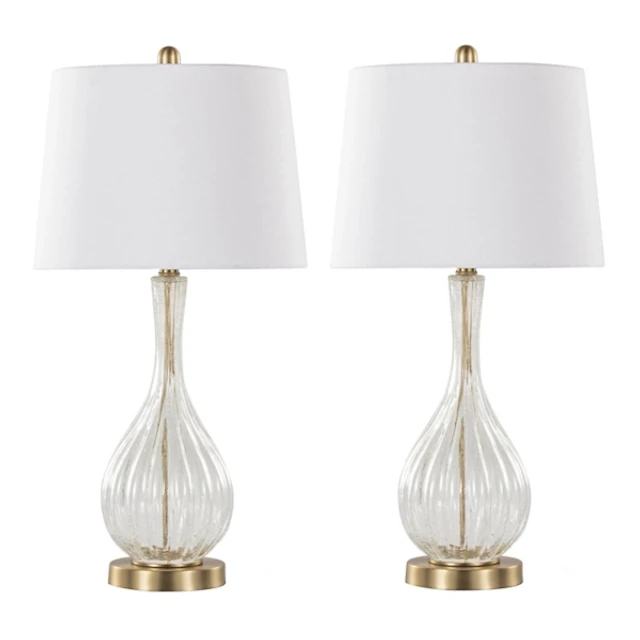 Clear Crackle Glass Penny Table Lamps, Set of 2