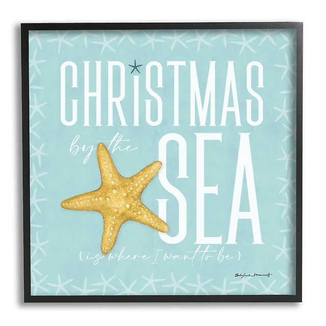 Stupell Industries Christmas By The Sea Wreath Framed Giclee Art