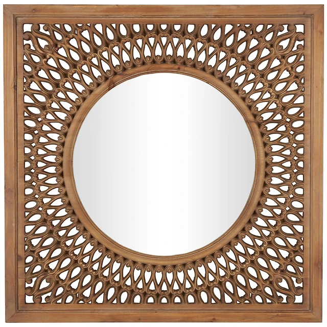 Brown Wood Industrial Wall Mirror, 32" x 32" x 2"