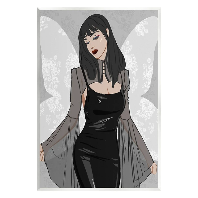 Stupell Industries Goth Fashion Girl Botanical Pattern Wall Plaque Art