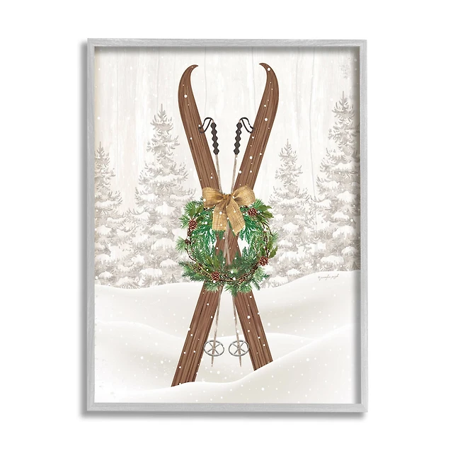 Stupell Industries Winter Skis Holiday Wreath Framed Giclee Art