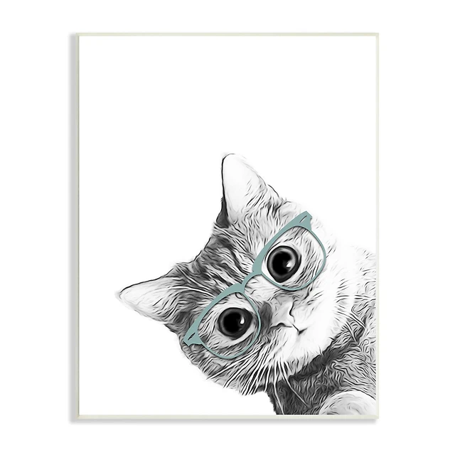 Stupell Industries Baby Kitten Peeking Glasses Portrait Wall Plaque Art