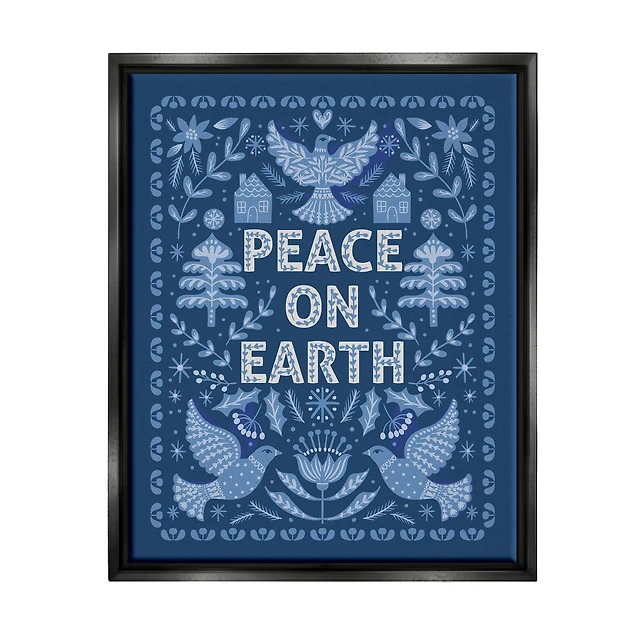 Stupell Industries Deer Winter Botanical Wreath Framed Floater Canvas Wall Art