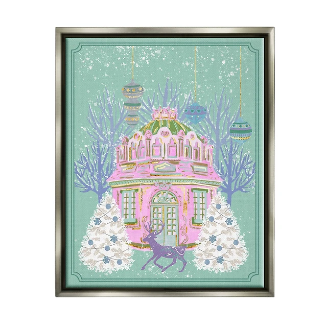 Stupell Industries Snowy Deer Holiday Cardinal Framed Floater Canvas Wall Art