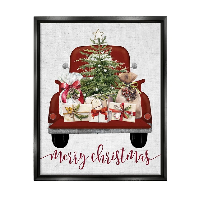 Stupell Industries Merry Christmas Gifts Truckload Framed Floater Canvas Wall Art