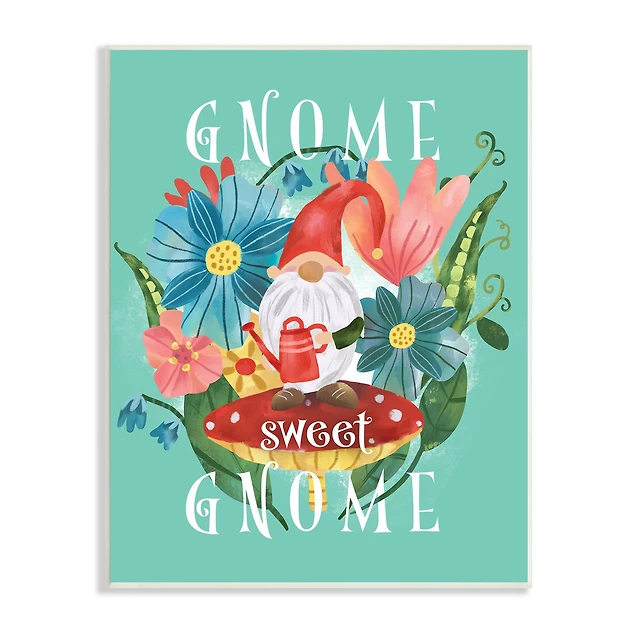 Stupell Industries Gnome Sweet Gnome Phrase Spring Floral Mushroom Garden Wall Plaque
