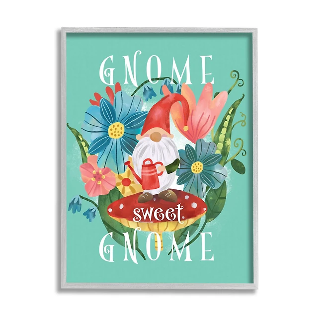 Stupell Industries Gnome Sweet Gnome Phrase Spring Floral Mushroom Garden Canvas Wall Art