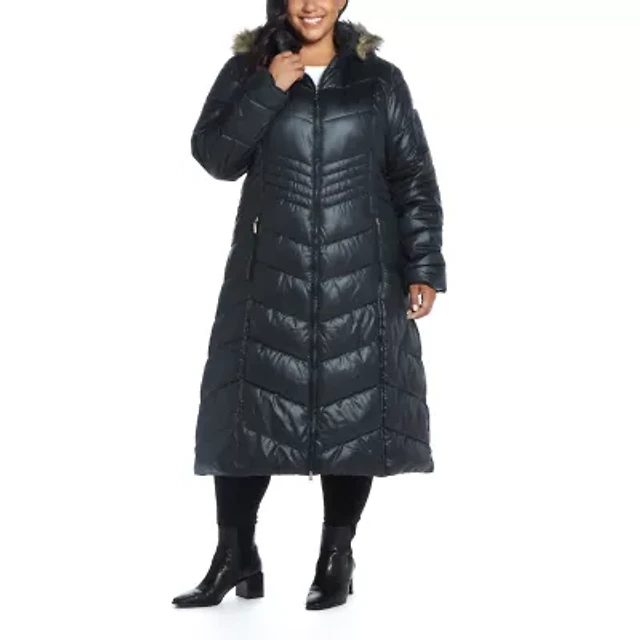 Liz Claiborne Womens Plus Hooded Midweight Puffer Jacket