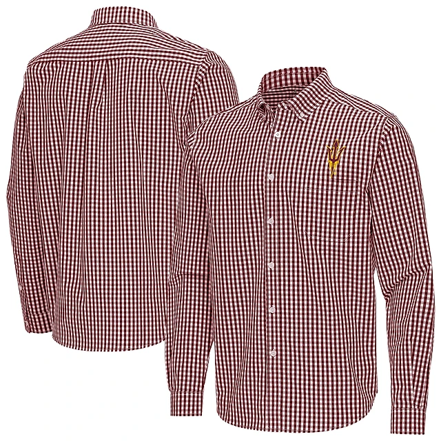 Antigua Arkansas Razorbacks Ellis Woven Tri-Blend Long Sleeve Button-Down Shirt