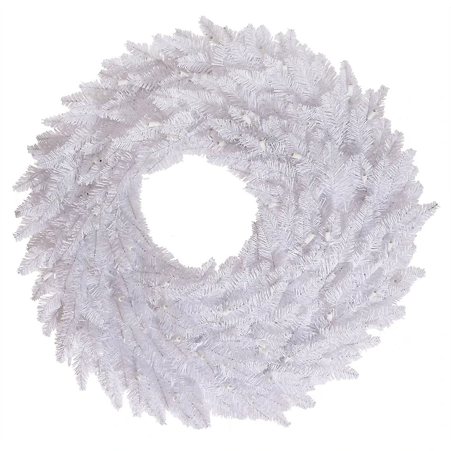 30" Pre-Lit Snowy Bristle Pine Artificial Christmas Wreath, Warm White Lights