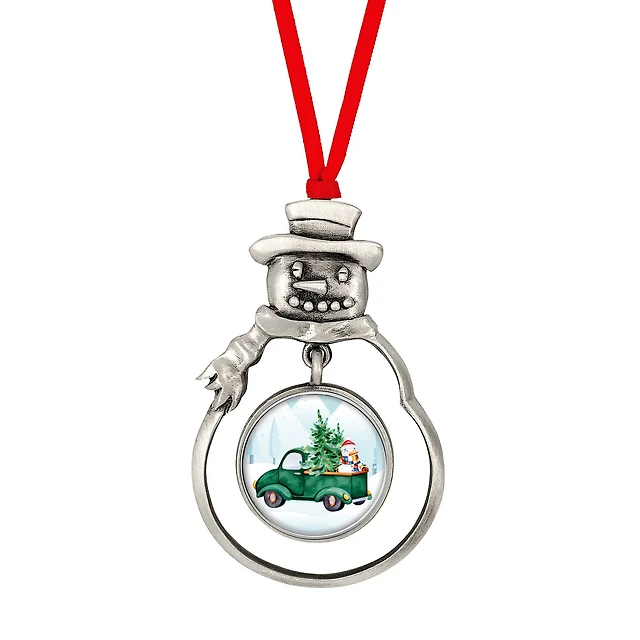 Snow Man Ornament With Colorized Quarter Green Vintage Christmas Truck Coin