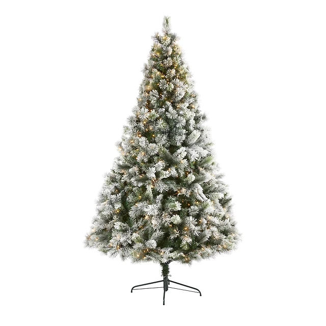 8ft. Pre-Lit Flocked Oregon Pine Artificial Christmas Tree, Clear LED Lights