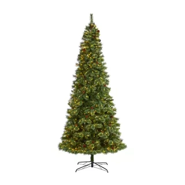 Nearly Natural White Faux 10 Foot Pre-Lit Pine Christmas Tree