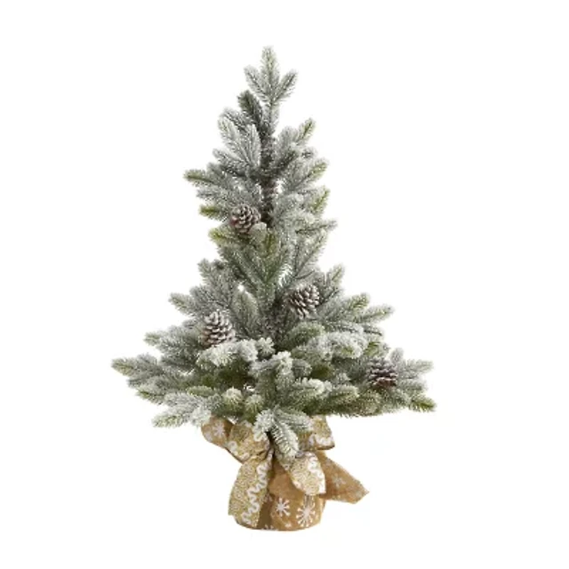 Nearly Natural 2 Foot Frosted Pine With Pinecones And Burlap Base Pre-Lit Christmas Tree