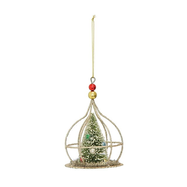 Hello Honey® 5" White & Silver Glass Cloche with Deer & Trees Ornament