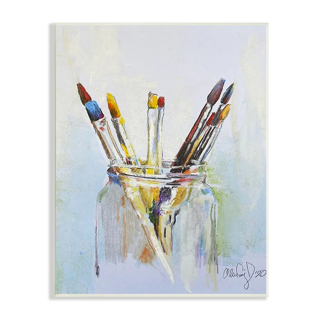 Stupell Industries Paintbrushes in Glass Jar Expressive Artist Tools Wall Plaque