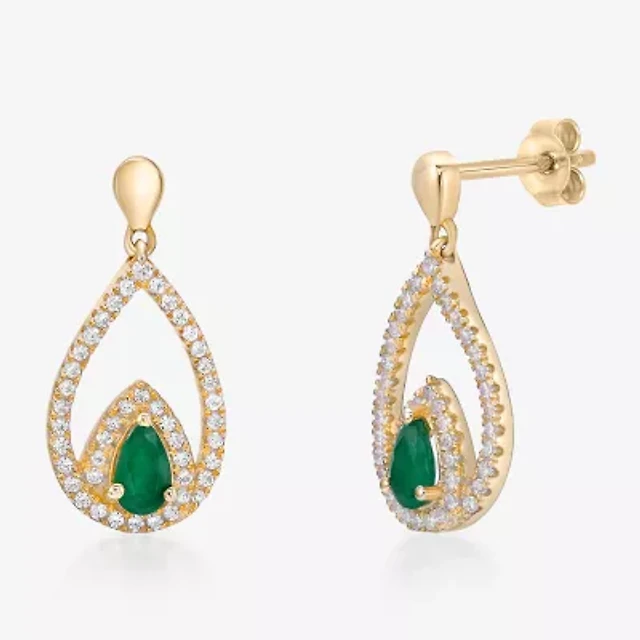 Pear-Shaped and Princess-Cut Cubic Zirconia Drop Earrings in 10K Gold