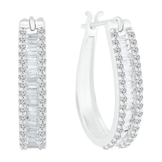 Mens 1 CT. T.W. Natural White Diamond 10K White Gold 15mm Hoop Earrings