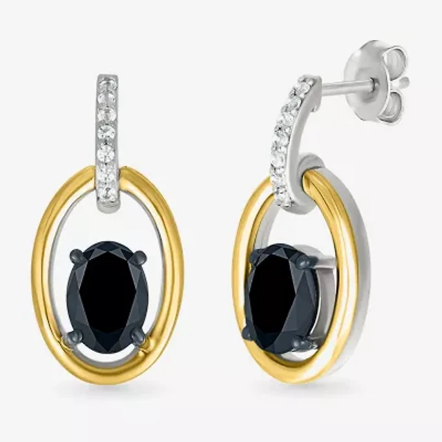 Womens Genuine Black Onyx 10K Gold Sterling Silver Round Drop Earrings
