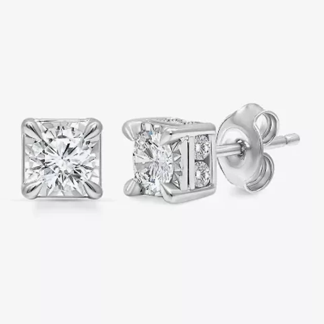 10K White Gold Round Diamond Square Shape Stud Earrings 5/8 Cttw