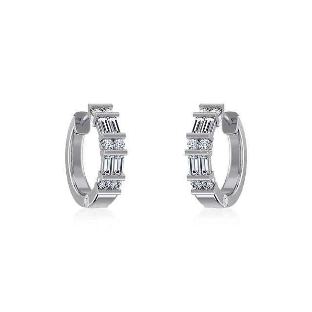 Previously Owned Diamond Hoop Earrings 1/4 ct tw Round & Baguette 10K Yellow Gold