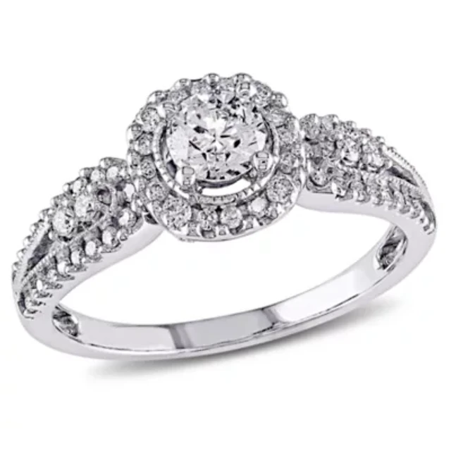 Now + Forever Multi-Diamond Halo Engagement Ring 1/2 ct tw 10K White Gold