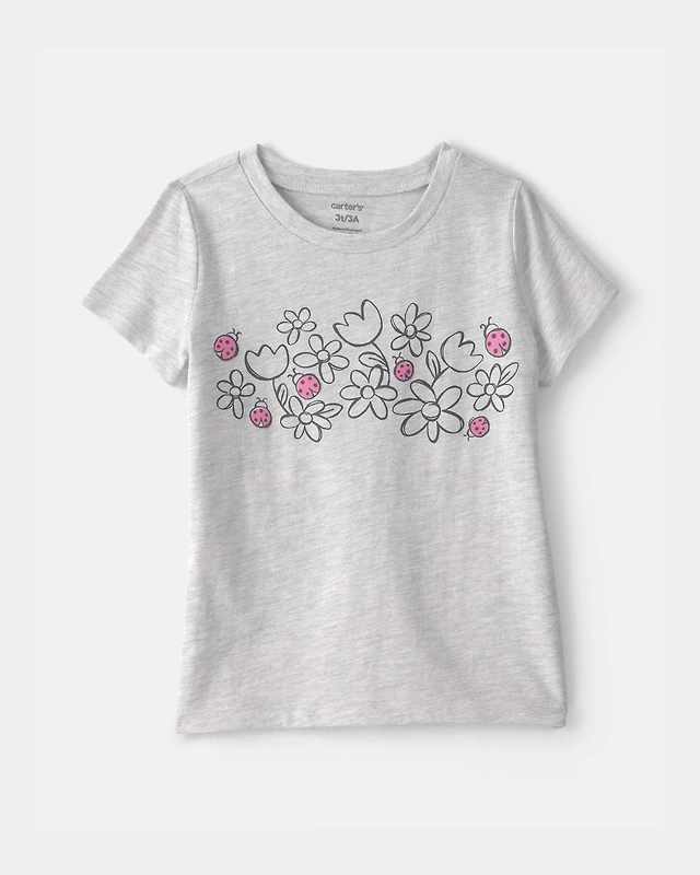 Toddler Girl Ladybug Floral Graphic Tee - Grey