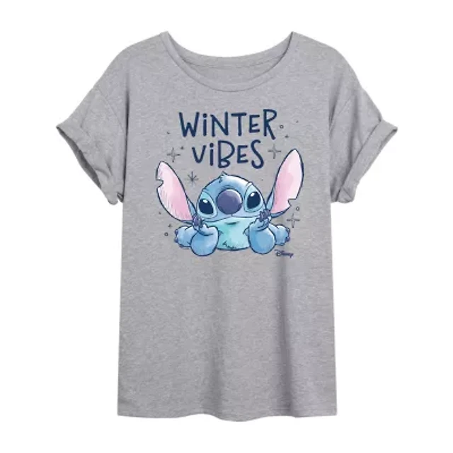 Stitch Winter Vibes Tee Womens Crew Neck Short Sleeve Graphic T-Shirt