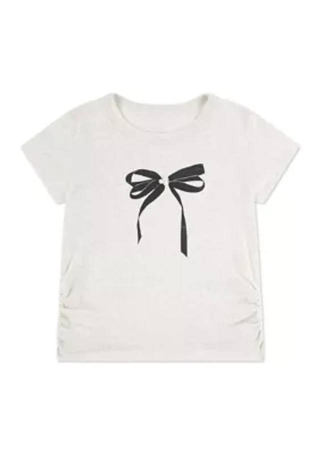 pearl bow ruched tee