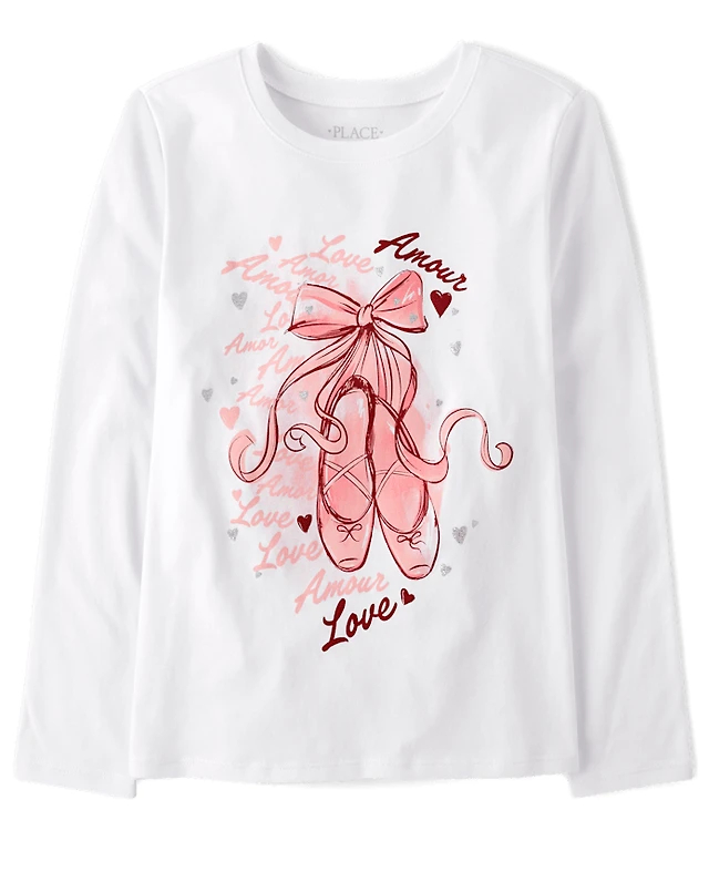 Girls' long-sleeve glitter polish graphic tee
