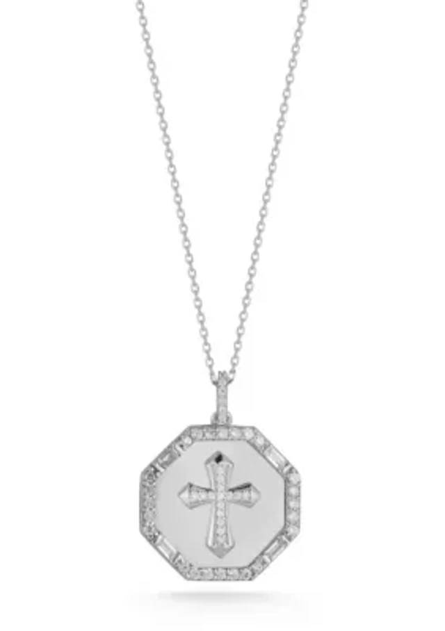 Sterling Silver CZ Cross Octagon Medallion Necklace