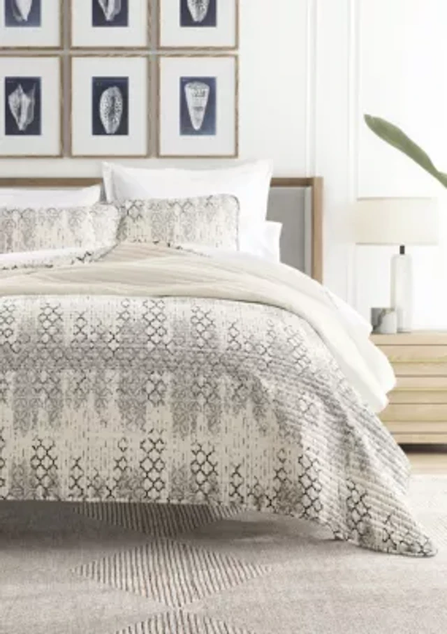 Brooklyn Loom Matte Cotton Velvet Wavy Square Stitch Quilt Set