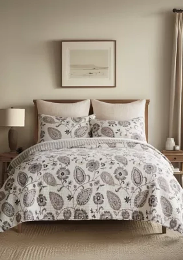 Frye Vintage Washed Cotton Blue Full/Queen 3 Piece Quilt Set