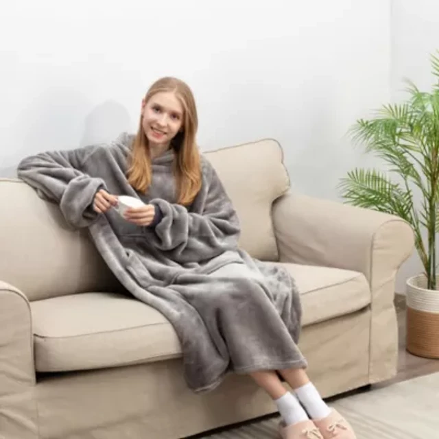 Wearable Blanket Oversized Soft Microplush - Hood, Sleeves, Pouch Pocket