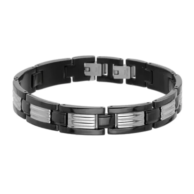 Mens Stainless Steel & Black IP Link Bracelet