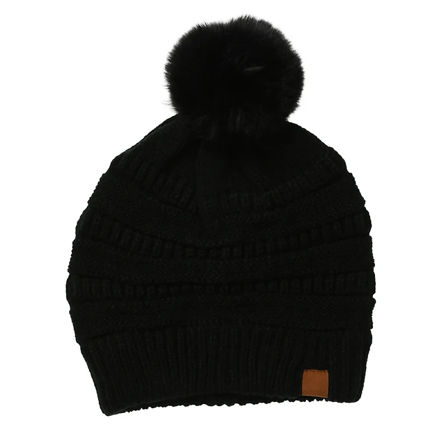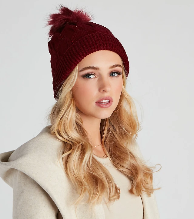 City Chic Quilted Puff Faux Fur Pom Beanie