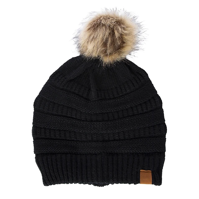 Snow Business Cable Knit Faux Fur Pom Beanie