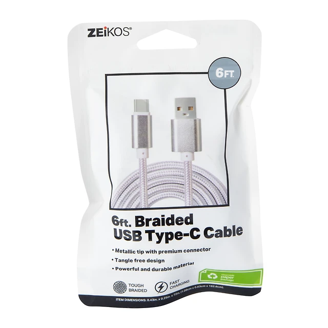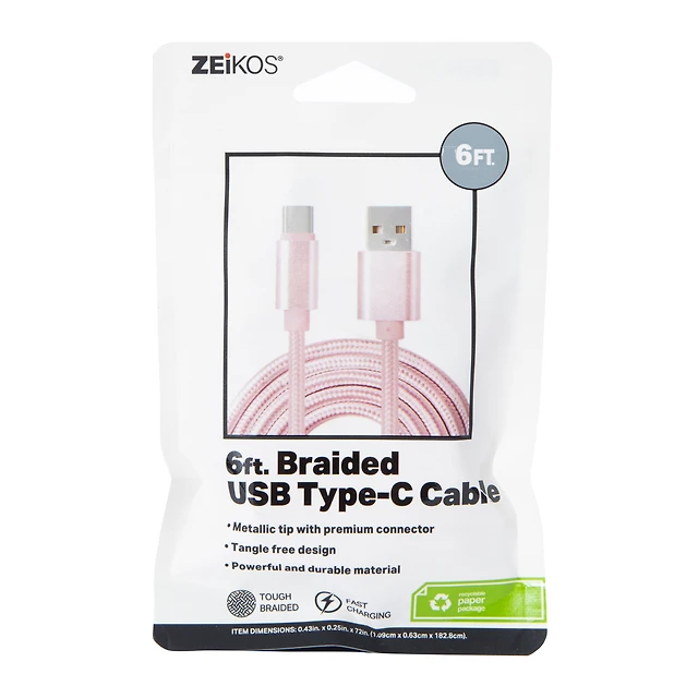 JADE Type C - USB Charging Cable, 6 ft, Assorted