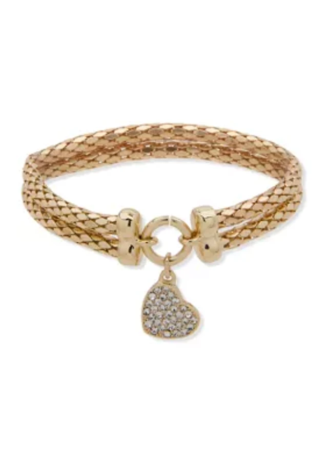 Made in Italy Heart Charm Dangle Mesh Bracelet in 10K Gold
