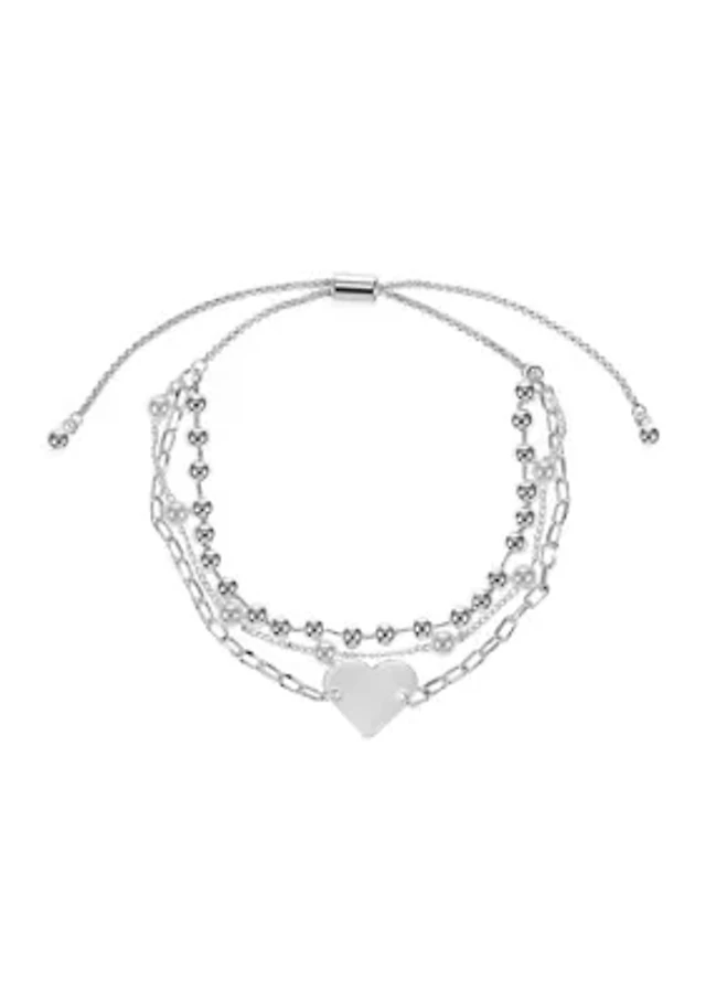 Engravable Heart Tag Dangle Charm Snake Chain Slider Bracelet Set