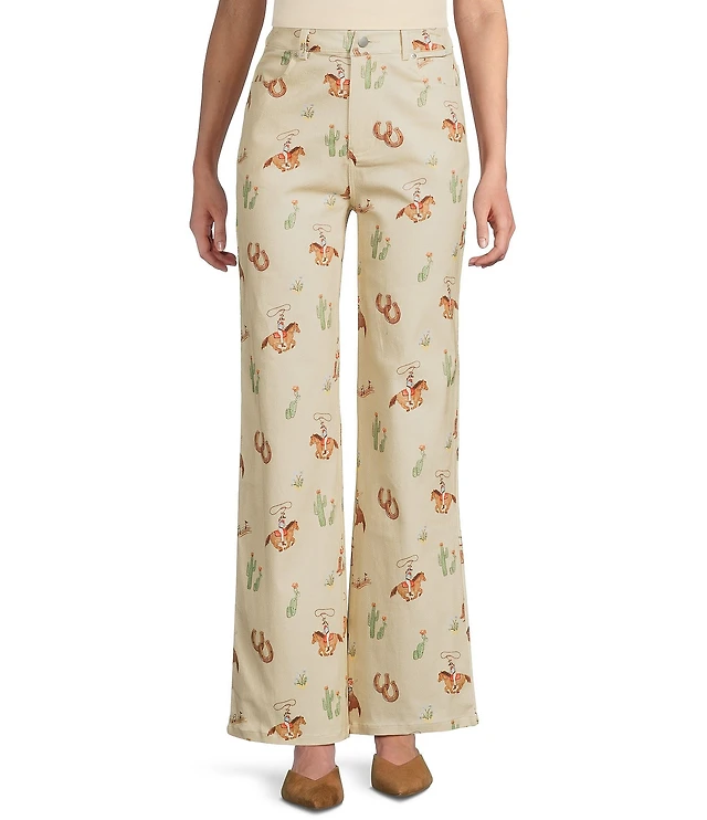 Wrangler® Mid Rise Trumpet Flare Stripe Print Western Jeans